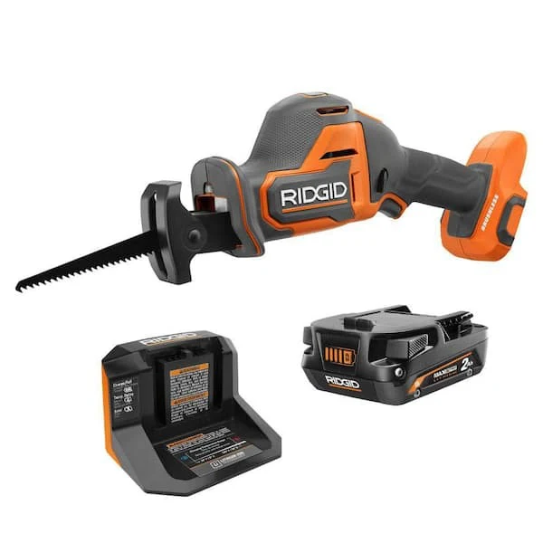 RIDGID introduces the R8648 SubCompact Brushless Cordless One-Handed Reciprocating Saw. This powerful brushless one-handed reciprocating saw delivers best in class cutting performance when tested against the leading competitors, with 0-3,200/min (SPM) and a 7/8 in. stroke length. Designed for one-handed use and often used in compact or overhead spaces, this SubCompact Brushless Cordless One-Handed Reciprocating Saw is 40% lighter weight and 25% more compact when compared to the R8647 Brushless Reciprocating Saw for a lightweight design and heavyweight performance. This cordless one-handed reciprocating saw also features a tool-free blade change and an LED light for improved visibility. As always, this RIDGID 18V SubCompact Brushless Cordless One-Handed Reciprocating Saw is 100% compatible with all RIDGID 18V batteries. Best of all, this tool is backed by the Industry's Best Lifetime Service Agreement, simply register within 90 days of purchase for FREE Parts, FREE Service, FOR LIFE. The RIDGID SubCompact Brushless Cordless Reciprocating Saw includes the R8648 18V SubCompact Brushless One-Handed Reciprocating Saw, Wood Cutting Saw Blade, and Operator's Manual. The RIDGID SubCompact Brushless Cordless Reciprocating Saw includes the R8648 18V SubCompact Brushless One-Handed Reciprocating Saw, Wood Cutting Saw Blade, 2.0 Ah Battery, Charger, and Operator's Manual.